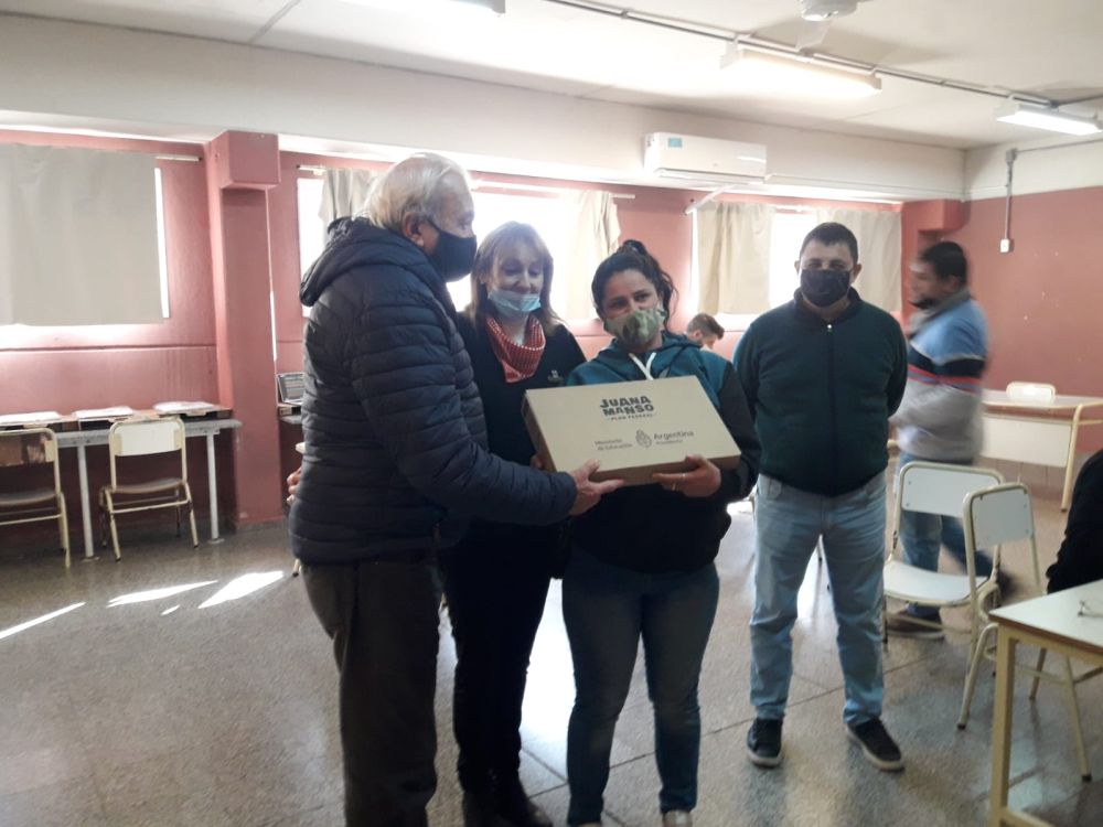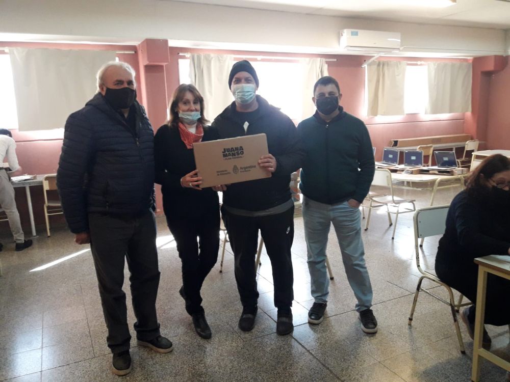 Los equipos son marca Noblex y los alumnos fueron inscriptos en la plataforma “Juana Manso” para luego recibir la máquina para estudiar. Esta Plataforma fue muy útil en la pandemia; no solo para los estudiantes sino también para los Docentes y Profesores que recibían capacitación y herramientas para la enseñanza remota.
